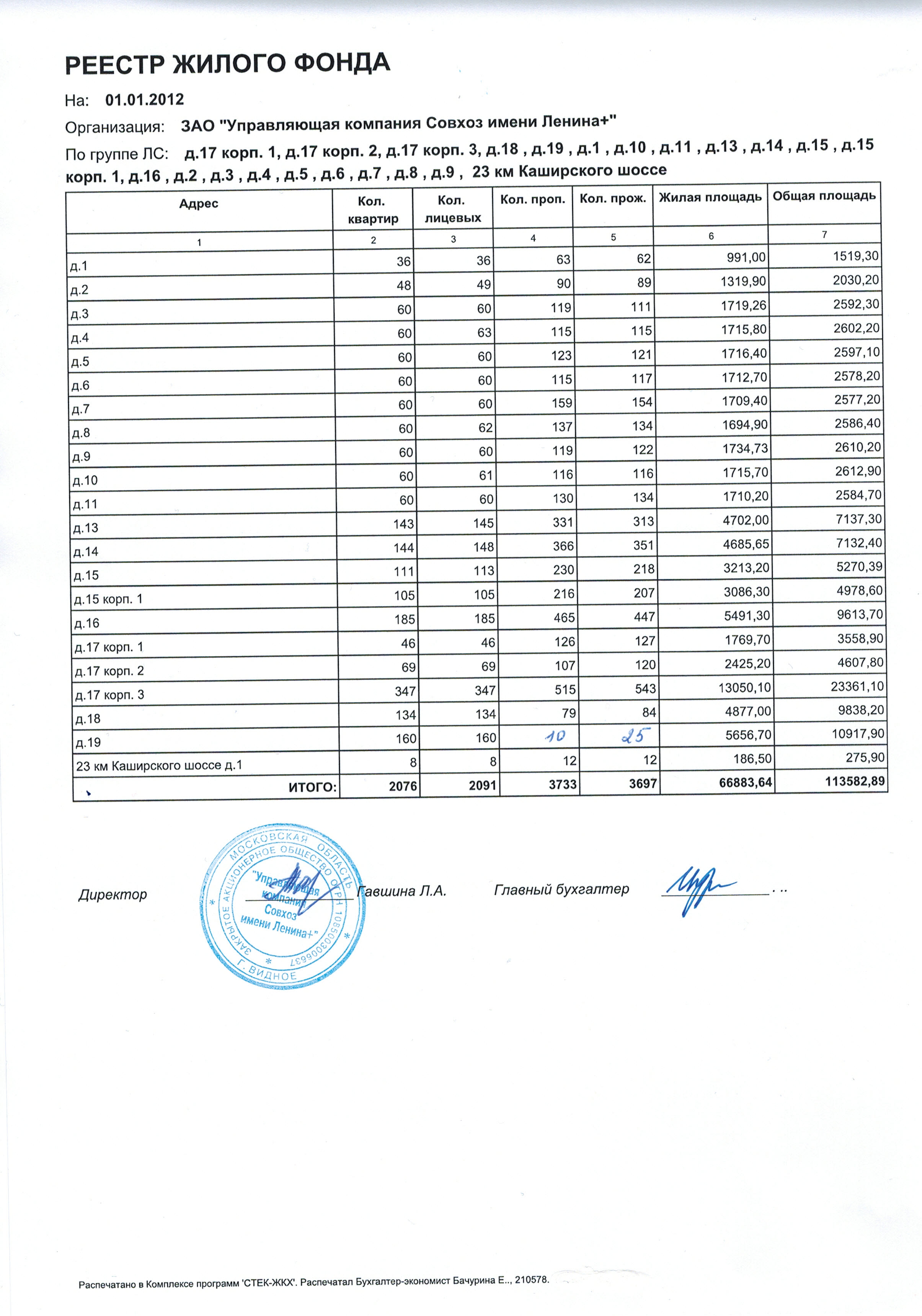 Реестр жилого фонда (2012 год)
