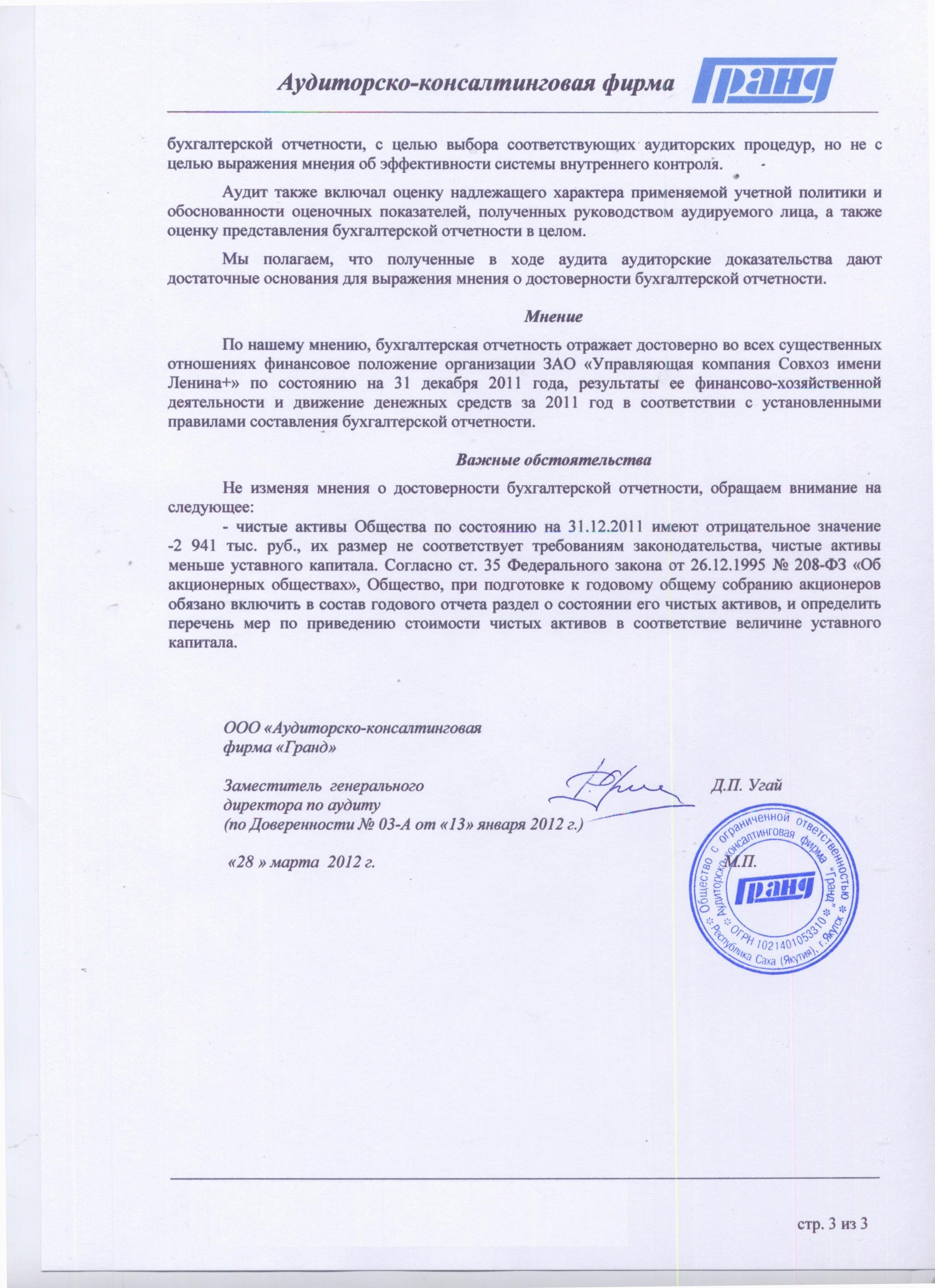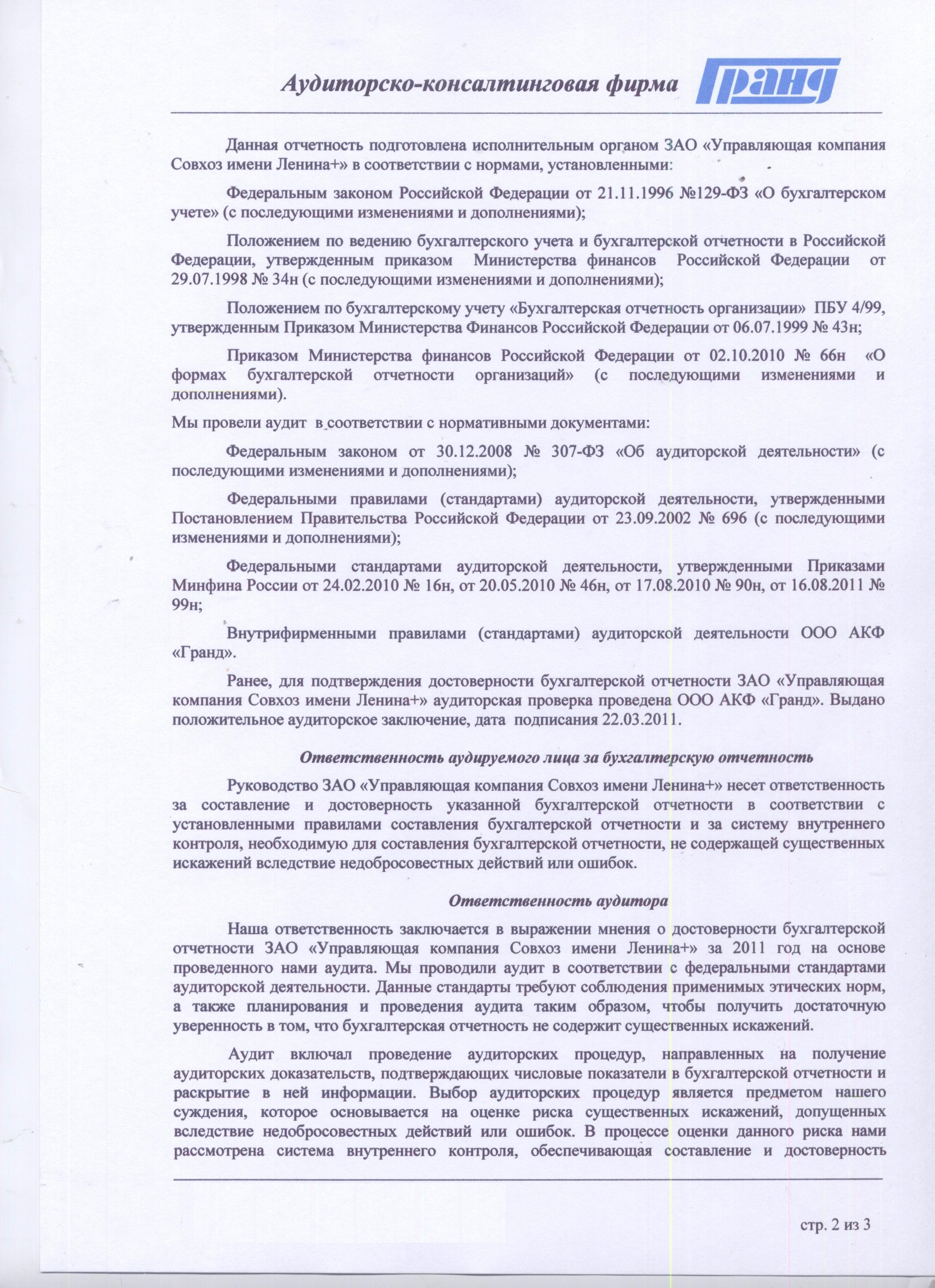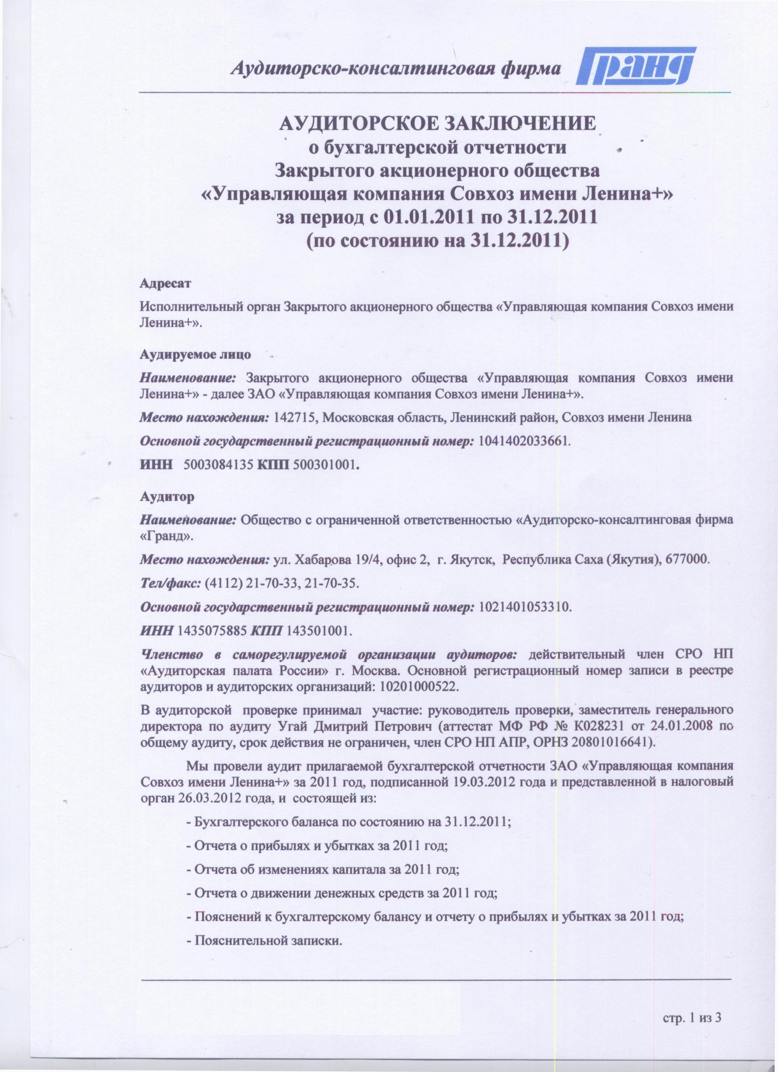 Аудиторское заключение и баланс за 2011 год