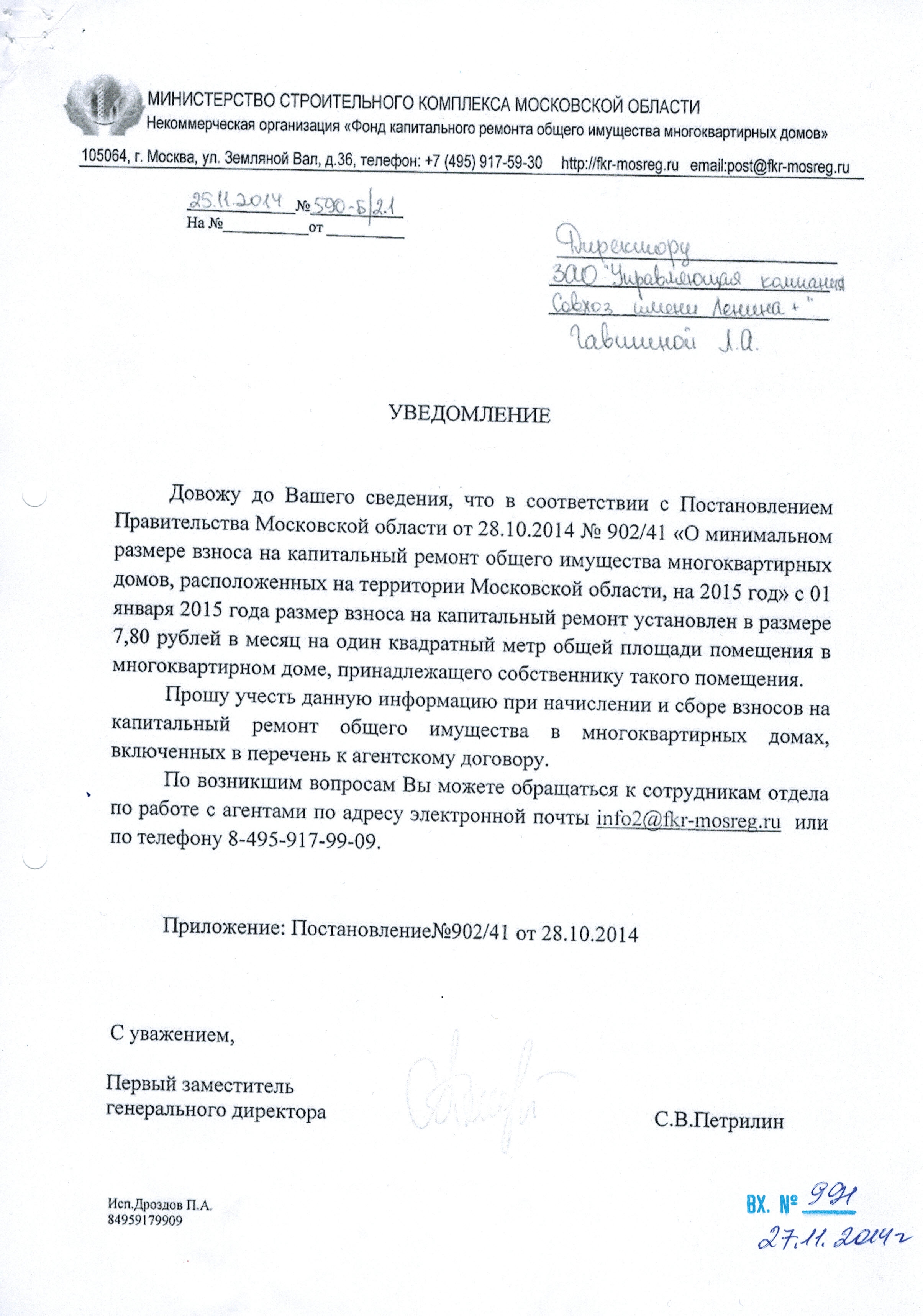 Уведомление о минимальном взносе на капремонт на 2015 год